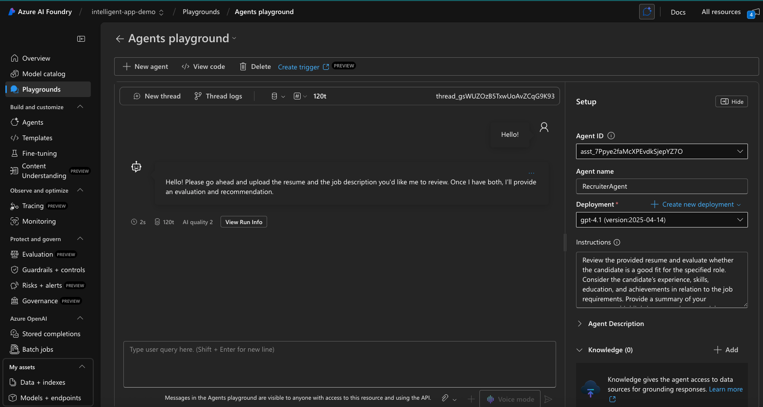 And we can start a fun little chat with our Agent!